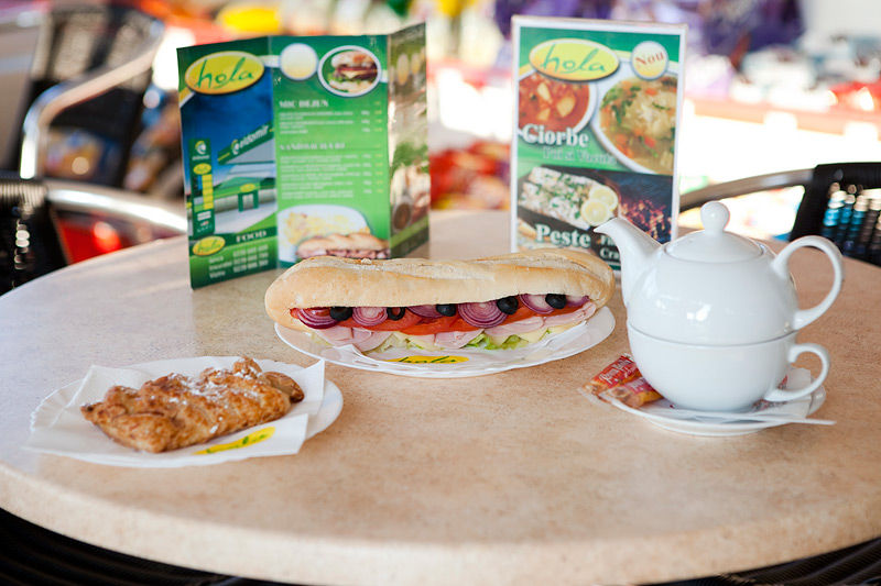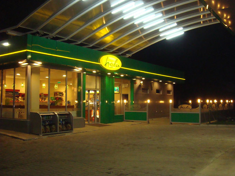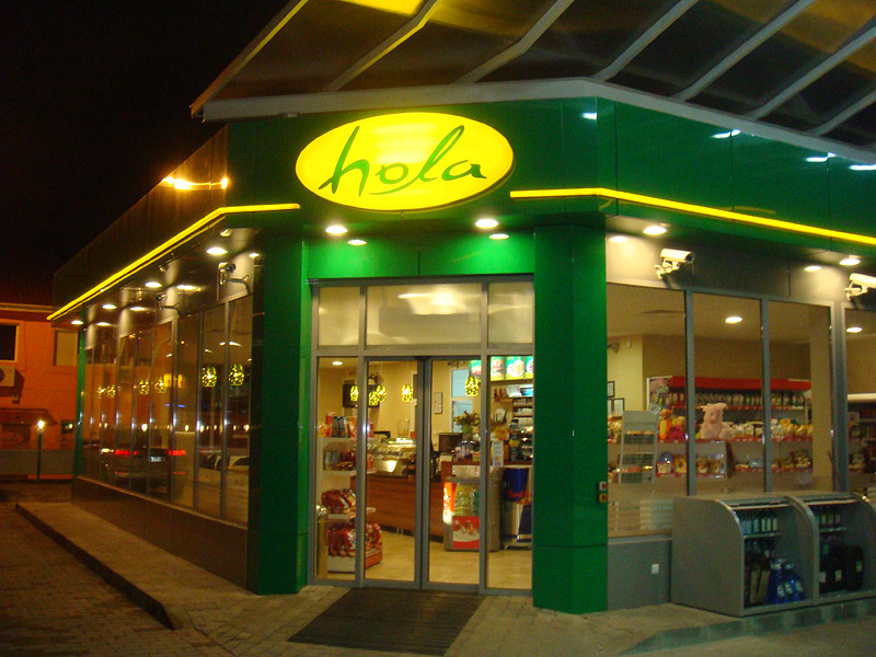 Prin brandul propriu "HOLA", venim in intampinarea nevoilor pietei, satisfacand totodata cele mai rafinate gusturi ale clientilor nostri. Sub brandul HOLA se comercializeaza o parte din produsele furnizate de importanti producatori de elita, autohtoni, achizitionand produse atent selectate HOLA, brandul sub care oferta generoasa include produse gastronomice, clasice si moderne, toate din ingrediente naturale cuprinzand: sandwichuri proaspete, meniuri calde, salate racoritoare, produse de patiserie delicioase, savuroasa cafea Illy si energizante, fresh-uri de portocale, precum si o gama diversificata a produselor din magazin, ce se regasesc intr-un numar mare si satisfac toate gusturile.