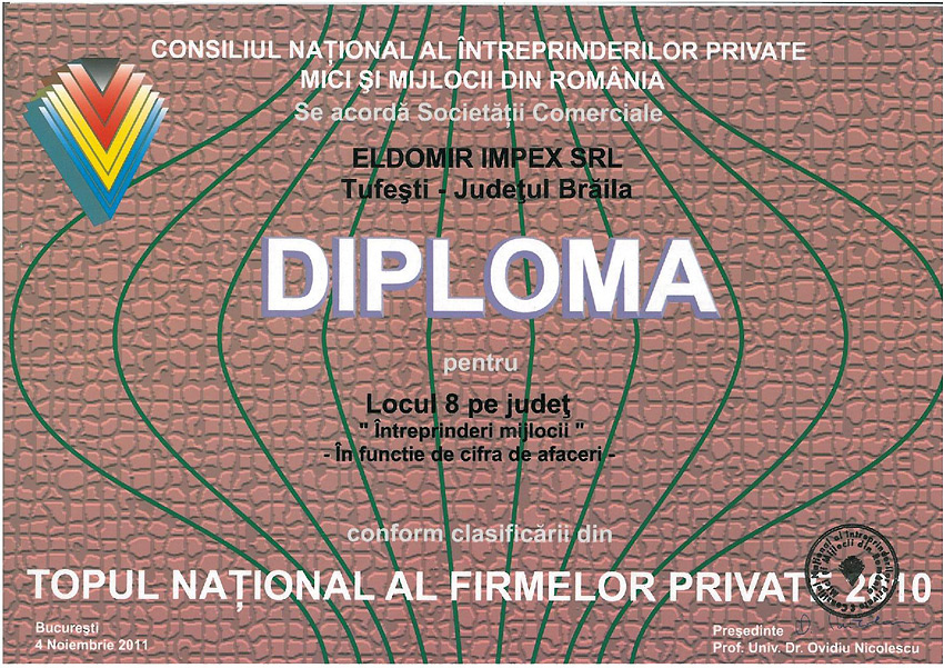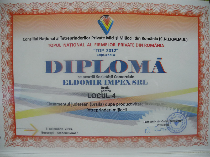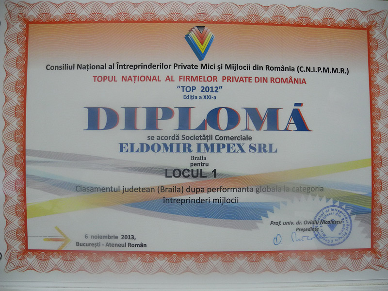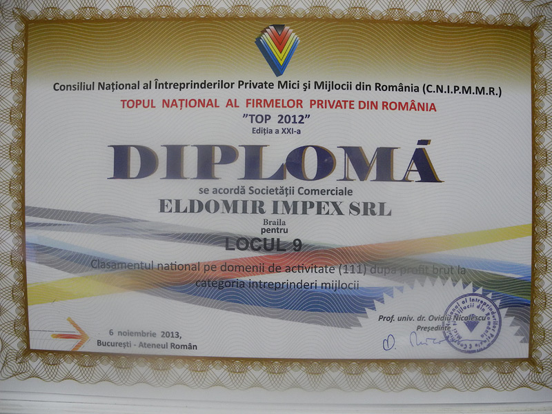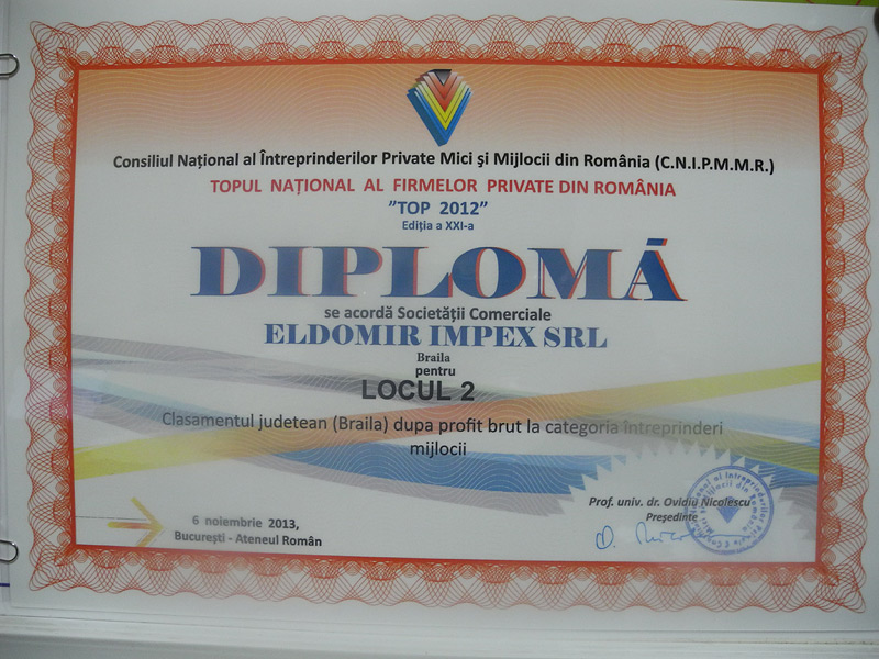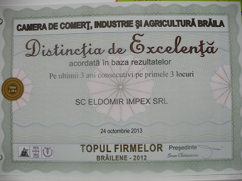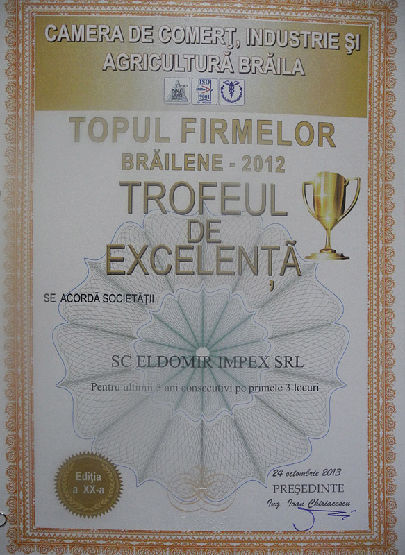 De ce sa alegeti ELDOMIR? Deoarece activitatea noastra a fost recunoscuta de multe ori pentru calitate si excelenta. Suntem mandri sa va prezentam cateva din premiile cu care am fost onorati de-a lungul anilor. Descoperiti-le în galeria foto.
